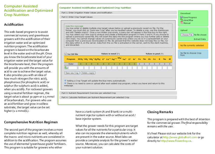 Computer Assisted Acidification and Optimised Crop Nutrition Calculator