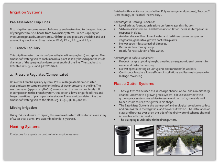 Pre-Assemblied Drip Lines, Misting Irrigation, Heating Systems, and Plastic Gutter Systems