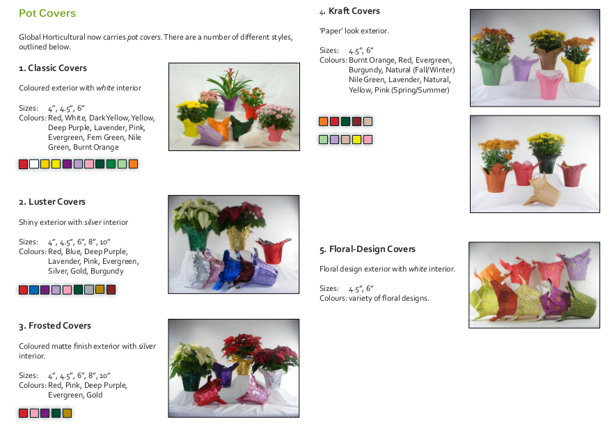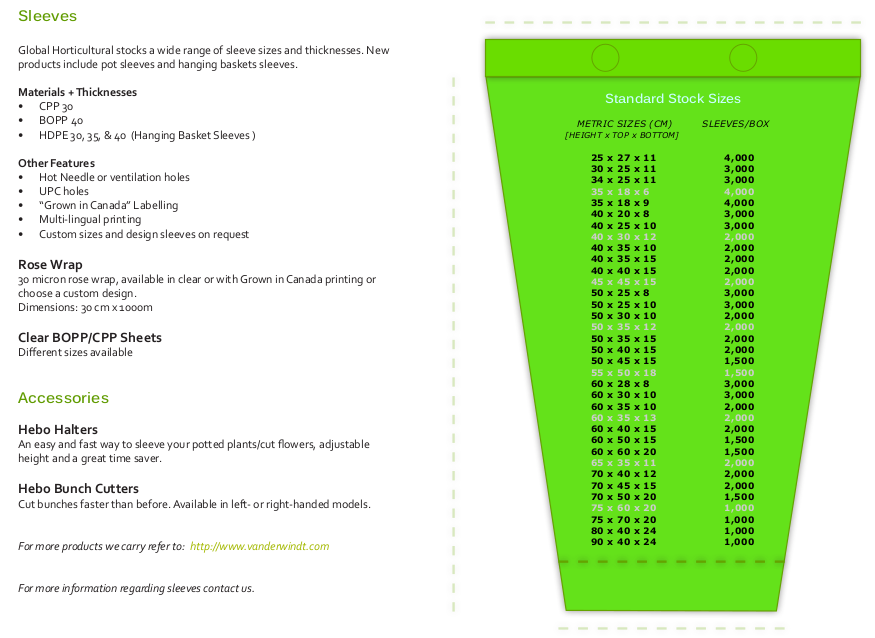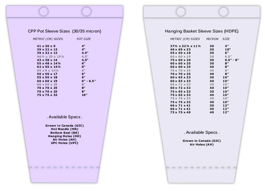 Sleeves Materials, Accessories, and Sizes: Standard, Pot, Hanging Basket